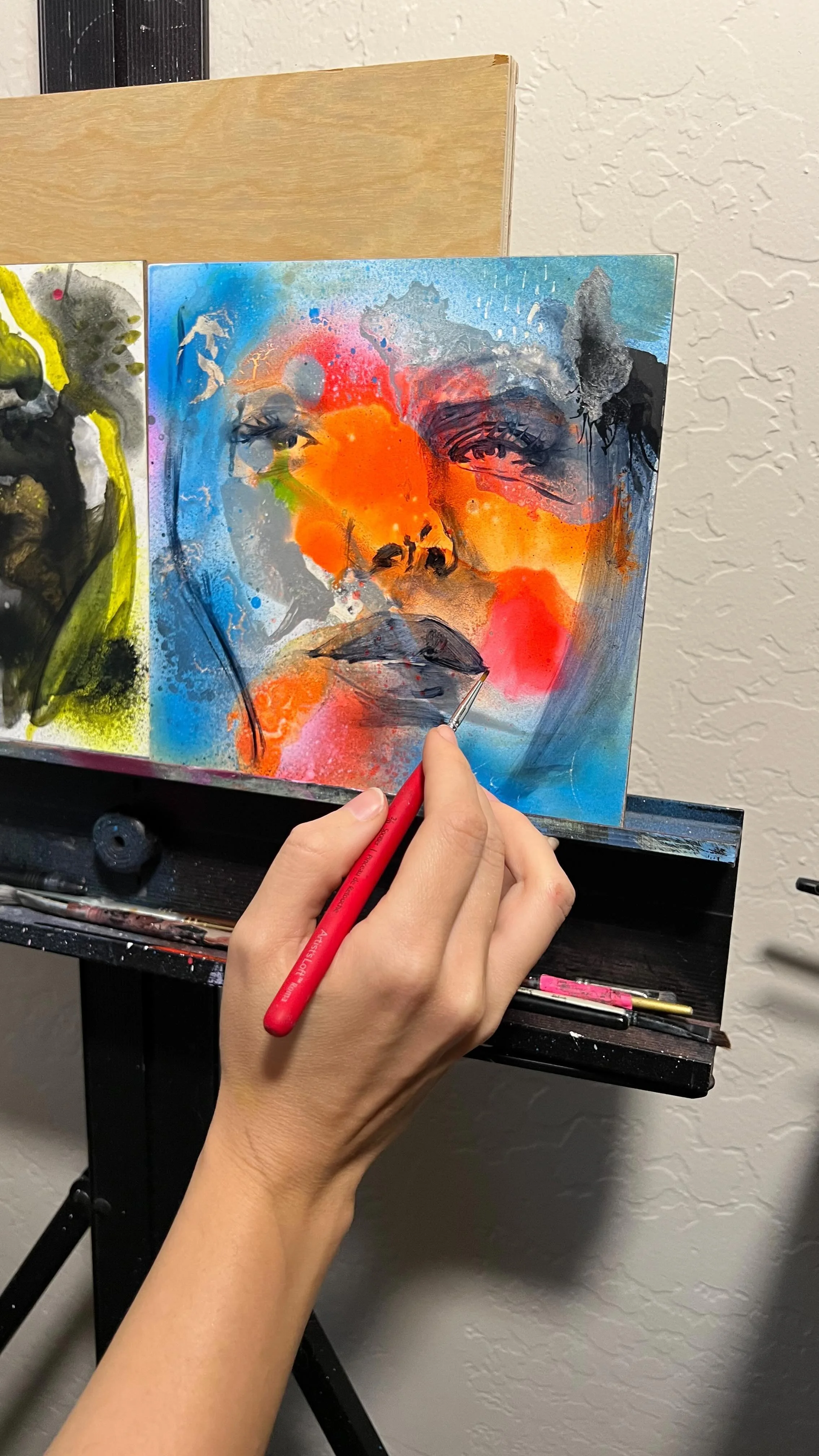 Determined to bring her wild ideas and dreams to fruition, she dedicated one year to studying old master skills and techniques with other local artists. She now uses multiple mediums such as oil, acrylics, and spray paint, along with many mixed techniques to achieve her finished pieces. This allows Miranda to play freely, experiment, be wild, and still achieve an incredible level of excellence with her figures. Since launching her career, Miranda has gained collectors and strong supports world-wide, participating in renowned exhibitions with other established artists.